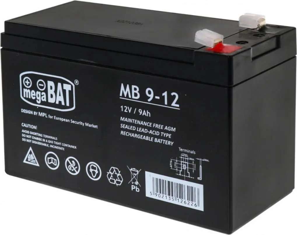 Hermeticky uzatvorený olovený akumulátor pre zabezpečovacie systémy 12V/9Ah. Špecifikácia